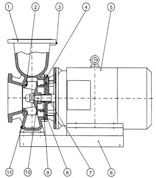 型號意義 ![]() 特點 1、泵為臥式結構,進出口口徑相同,外形緊湊美觀,占地面積小,建筑投入低,如加上防護罩則可置于戶外使用。 2、葉輪直接安裝在電機的加長軸上,軸向尺寸短,結構緊湊,泵與電機軸承配置合理,能有效地平衡泵運轉產(chǎn)生的徑向和軸向負荷,從而保證了泵的運行平穩(wěn),振動小、噪音低。 3、軸封采用機械密封或機械密封組合,采用進口鈦合金密封環(huán)、中型耐高溫機械密封和采用硬質(zhì)合金材質(zhì),耐磨密封,能有效地延長機械密封的使用壽命。 4、安裝檢修方便,無需拆動管路系統(tǒng),只要卸下泵聯(lián)體座螺母即可抽出全部轉子部件。 5、可根據(jù)使用要求即流量和揚程的需要采用泵的串、并聯(lián)運行方式。 6、泵的出口可安裝成0°、90°、180°幾個不同方向以滿足不同的連接場合。 工作條件 1、泵系統(tǒng)最高工作壓力≤1.0Mpa,訂貨時請注明系統(tǒng)工作壓力。泵系統(tǒng)工作壓力大于1.0Mpa時應在訂貨時另行提出,以便在制造時泵的過流部分和聯(lián)接部分采用更合理的材質(zhì)。 2、環(huán)境溫度<40℃,相對濕度<95%。 3、所輸送介質(zhì)中固體顆粒體積含量不超過單位體積的0.1%,粒度<0.2mm。 4、使用環(huán)境海拔高度不超過1000米,超過時應在訂貨時提出,以便為您提供更可靠的產(chǎn)品 注:如使用介質(zhì)為帶有細小顆粒,請在訂貨時說明,以便廠家采用耐磨式機械密封。 用途 ISW臥式單級單吸離心泵,供輸送清水及物理化學性質(zhì)筆似于清水的其他液體之用,適用于工業(yè)和城市給排水、高層建筑增壓送水、園林噴灌、消防增壓、遠距離輸送、暖通制冷特循環(huán)、浴室等冷暖水循環(huán)水泵環(huán)增壓及設備配套,使用溫度T<80℃。 結構說明 ![]() 1.泵體:降低液流速度,使速度能轉換成壓能。 2.葉輪:在泵中起主導作用,葉輪中的片強迫液體旋轉,液體在離心力作用下向四周甩出。 3.取壓塞:安裝壓力表監(jiān)控泵的正常啟動。 4.放氣閥:排放泵內(nèi)氣體,確保泵的正常啟動。 5.Y/Y2系列電機:泵的驅(qū)動部分,采用直聯(lián)形式。 6.底盤:泵的固定部分,確保泵安裝的穩(wěn)固, 7.擋水圈:防止因密封漏水而使用電機進水。 8.泵蓋:精心設計,與電機同端蓋,軸向尺寸縮短,結構簡單。 9.機械密封:采用不銹鋼、碳化鎢、氟橡膠等材料制成,密封性能好、壽命長、不滲漏。 10.泵軸:與電機同軸,同心度高,使泵運行平穩(wěn)無噪音和振動現(xiàn)象。 11.放水塞:維護或長期不用時,將泵內(nèi)液體放干。 因產(chǎn)品生產(chǎn)批次、型號不同,產(chǎn)品圖片及安裝尺寸僅供參考,詳情可聯(lián)系我們的銷售人員了解更多ISW32-125臥式管道熱水泵相關信息!