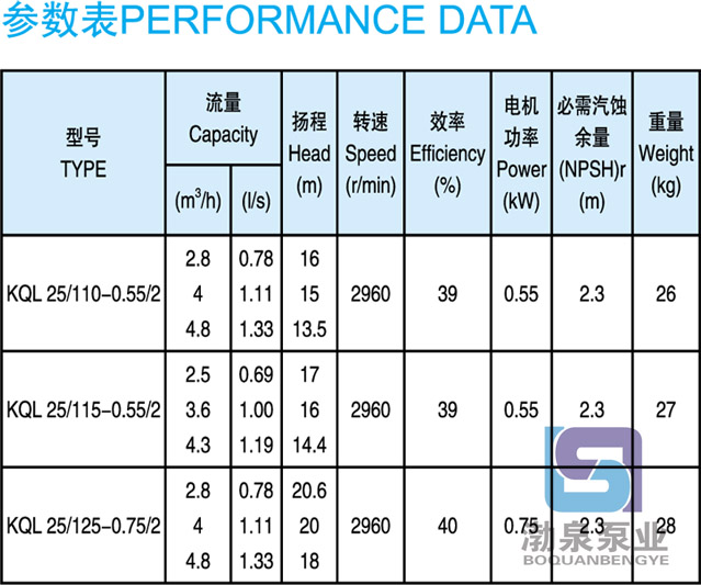 KQL25/110-0.55/2 立式單級管道泵用于空調、采暖、衛生用水、水處理冷卻冷凍系統、液體循環和供水、增壓及灌溉等領域中無腐蝕的冷水和熱水輸送。