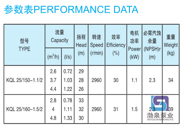 產品介紹 KQL25/160-1.5/2 立式熱水循環泵供輸送不含固體顆粒的清水及物理化學性質類似于水的液體之用。同時根據使用溫度、介質等不同在ISG型管道離心泵基礎上派出適用熱水、高溫、腐蝕性化工泵、油泵。該產品具有同效節能、噪音低、性能穩定等特點。 用途: KQL25/160-1.5/2 立式熱水循環泵用于空調、采暖、衛生用水、水處理冷卻冷凍系統、液體循環和供水、增壓及灌溉等領域中無腐蝕的冷水和熱水輸送。 工作條件: 轉速:2960r/min,1480r/min或980r/min 流量范圍:1.8~2000m3/h 揚程:≤127m 介質溫度:-10℃~120℃ 環境溫度:最大+40℃;海拔高度小于1000m;相對濕度不超過95% 材質: 泵殼、泵蓋、葉輪:鑄鐵 泵軸:45#鋼鍍鉻或不銹鋼(2Cr13) 機械密封動、靜環:浸銻石墨、碳化硅 結構:結構緊湊的單級泵,適用于現代建筑物。 產品特點: KQL25/160-1.5/2 立式熱水循環泵結構緊湊、合理,泵與電機直接連接,外形美觀,占地面積小效率高,閉式鑄鐵葉輪,葉輪懸臂短,機泵軸完全同心,泵運行平穩、可靠,噪音低壽命長,強制環流沖洗機械密封,免保養、無滲漏。 管道泵選型指南: 例如:KQL80/160-7.5/2 或KQW80/160-7.5 KQL標準立式單級離心泵,KQW標準臥式單級離心泵 80進出口直徑 160葉輪名義直徑 7.5/2電機功率/電機極數 ![]() ![]() 因產品生產批次、型號不同,產品圖片及安裝尺寸僅供參考,詳情可聯系我們的銷售人員了解更多KQL25/160-1.5/2 立式熱水循環泵相關信息!