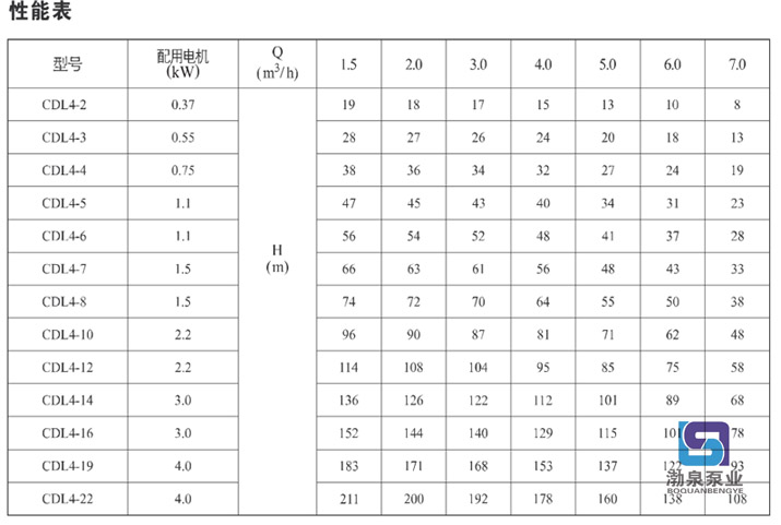 產品介紹 CDLF4-14FSWSC 立式不銹鋼多級循環泵是一種多功能產品,可以輸送從自來水到工業液體的各種不同介質,適應于不同溫度、流量和壓力范圍,CDL不銹鋼多級泵適用于無腐蝕性液體,CDLF適用于輕度腐蝕性液體。 水:水廠過濾與輸送、水廠分區送水、主管增壓、高層建筑增壓。 工業增壓:流程水系統、清洗系統、高壓沖洗系統、消防系統。 工業液體輸送:冷卻和空調系統、鍋爐給水和冷凝系統、機床配套、酸和堿。 水處理:超濾系統、反滲透系統、蒸餾系統、分離器、游泳池。 灌溉:農田灌溉、噴灌、滴灌。 運行條件 稀薄、干凈、非易燃易爆并不含固體顆粒或纖維的液體。 液體溫度:常溫型 -15℃至+70℃ 熱水型 -15℃至+120℃ 環境溫度:最高+40℃ 海拔:最高1000m CDLF4-14FSWSC 立式不銹鋼多級循環泵為安裝標準電機的非自吸式多級離心泵,電機軸通過泵頭用軸聯器直接與泵軸連接,拉桿螺栓將耐壓筒、過流部件固定在泵頭和進出水段之間,泵進出水口在泵底同一直線上;本泵可根據需要配置智能保護器,對泵干轉、缺相、過載等進行有效保護。 電機 電機為全封閉,風冷式二極標準電機。 防護等級:IP55 絕緣等級:F 標準電壓, 50Hz ![]() ![]() 因產品生產批次、型號不同,產品圖片及安裝尺寸僅供參考,詳情可聯系我們的銷售人員了解更多CDLF4-14FSWSC 立式不銹鋼多級循環泵相關信息!