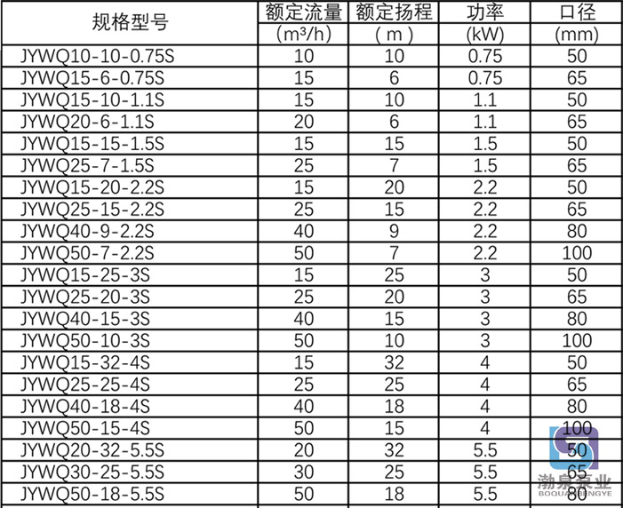 產(chǎn)品介紹 JYWQ20-32-5.5S 不銹鋼自動(dòng)攪勻排污泵采用不銹鋼精密鑄造外殼,具有耐腐蝕、環(huán)保型、揚(yáng)程高、流量大等特點(diǎn)。 產(chǎn)品特點(diǎn) 1.JYWQ20-32-5.5S 不銹鋼自動(dòng)攪勻排污泵采用獨(dú)特的單、雙流道式葉輪結(jié)構(gòu),提高了污物的通過(guò)能力,根據(jù)產(chǎn)品型號(hào)能通過(guò)泵口徑5倍的纖維,與直徑約為泵出口口徑50%的固體顆粒。 2.采用氟橡膠雙端面機(jī)封,氟橡膠徑向O型圈密封,有效對(duì)環(huán)境惡劣的液體進(jìn)行密封保護(hù)作用。 3.采用精密鑄造泵殼,重量輕、耐腐蝕、節(jié)能型、外形美觀、檢修方便、無(wú)需建泵房,潛入水中即可工作,減少工程價(jià)。 4.不銹鋼排污泵內(nèi)安裝過(guò)熱與電流保護(hù)器,防止電機(jī)過(guò)載發(fā)熱。特點(diǎn):利用泵自身出水壓力,攪勻污水池內(nèi)沉淀污泥,真正達(dá)到徹底排出污水池沉淀物的目的。 主要用途 JYWQ20-32-5.5S 不銹鋼自動(dòng)攪勻排污泵適用于建筑樓宇、醫(yī)院、住宅小區(qū)、市政工程、道路交通及施工、工廠排污、養(yǎng)殖、藥業(yè)、飲料、海水鹽水、一般腐蝕性介質(zhì)中含有的固體顆粒、長(zhǎng)纖維廢水、污水。 排污泵使用條件 1.以葉輪中心為準(zhǔn),潛入水下深度不得超過(guò)5m; 2.輸送介質(zhì)溫度不高于60C ; 3.輸送介質(zhì)的運(yùn)動(dòng)黏度為7x 10-~23x 10-m'/S ![]() ![]() ![]() 因產(chǎn)品生產(chǎn)批次、型號(hào)不同,產(chǎn)品圖片及安裝尺寸僅供參考,詳情可聯(lián)系我們的銷售人員了解更多JYWQ20-32-5.5S 不銹鋼自動(dòng)攪勻排污泵相關(guān)信息!