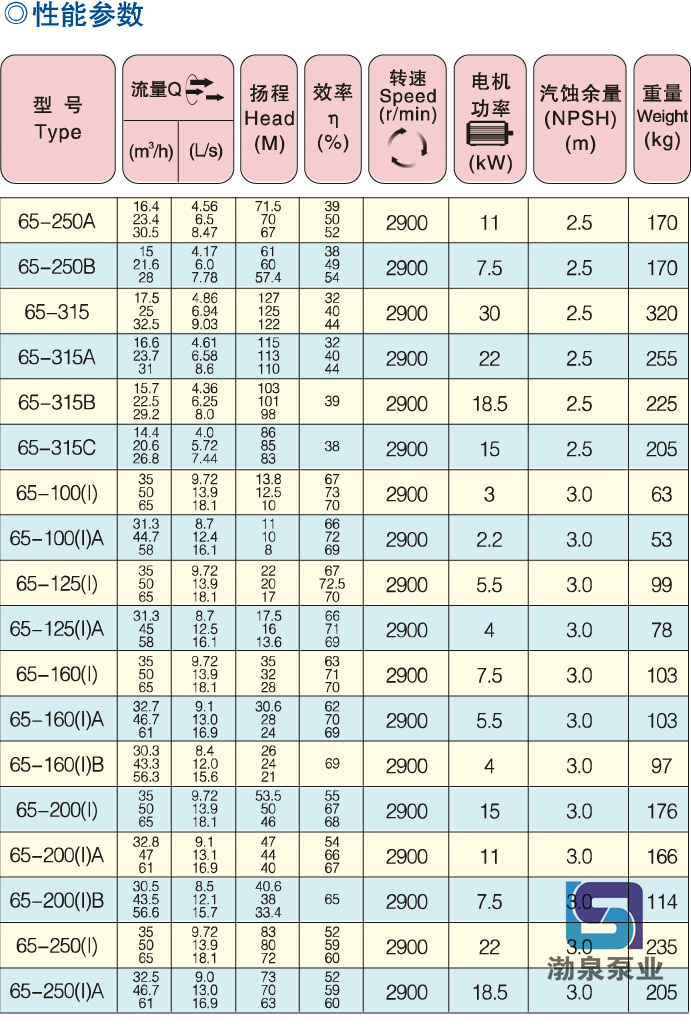 產(chǎn)品介紹 ISW65-160(I)B 臥式熱水管道泵是采用IS型離心泵之性能參數(shù),在一般臥式泵的基礎上進行巧妙組合設計而成,同時根據(jù)使用溫度、介質(zhì)等不同在ISW型管道泵基礎上派生出適用熱水泵、高溫、耐腐蝕化工泵、油泵。該系列產(chǎn)品具有高效節(jié)能、噪音低、性能可靠等優(yōu)點,符合JB/T53058-93的標準要求,產(chǎn)品按ISO2858標準設計制造。具有效率高、流量及揚程范圍大、結(jié)構(gòu)合理、成本低、壽命長、占地面積小、安裝維修方便等特點。是替代IS、DL等常規(guī)產(chǎn)品的新離心泵,特別適用于高層建筑的給排水、噴灌、冶金、市政、礦山水處理排污,食品、化工、空調(diào)及其他行業(yè)輸送水、化學介質(zhì)及其他液體。 ISW65-160(I)B 臥式熱水管道泵流量范圍15~1200m3 /h,分基本型、擴流型、A、B、C切割型等250多種規(guī)格,并根據(jù)流體介質(zhì)和溫度不同又派生出清水泵、熱水泵、化工泵、防爆油泵、防爆化工泵等系列產(chǎn)品。 ISW65-160(I)B 臥式熱水管道泵主要用途 1、ISW臥式清水泵供輸送清水及物理化學性質(zhì)類似于清水的其它液體之用,適用于工業(yè)和城市給排水、高層建筑增壓送水、園林噴灌、消防增壓、遠距離輸送、暖通制冷循環(huán)、浴室等冷暖水循環(huán)增壓及設備配套,使用溫度T≤80℃。 2、ISWR臥式熱水泵,廣泛適用于:冶金、化工、紡織、造紙以及賓館飯店等鍋爐熱水增壓循環(huán)輸送及城市采暖系統(tǒng),ISWR型使用溫度T≤120℃。 3、ISWH臥式化工泵,供輸送不含固體顆粒,具有腐蝕性。粘度類似于水的液體,適用于石油、化工、冶金、電力、造紙、食品、制藥和合成纖維等部門,使用溫度為-20℃~+120℃。 4、ISWY臥式管道油泵,供輸送汽油、煤油、柴油等油類產(chǎn)品或易燃、易爆液體,被輸送介質(zhì)溫度為-20℃~120℃。 5、ISWHY型臥式不銹鋼防爆化工離心泵,適用于輸送易燃性化工液體。 6、ISWD臥式低轉(zhuǎn)速泵,適應要求環(huán)境噪聲很低的場合,使用溫度T≤120℃。 ISW65-160(I)B 臥式熱水管道泵工作條件 1.吸入壓力≤1.0MPa,或泵系統(tǒng)最高工作壓力≤1.6MPa,即吸入口壓力+泵揚程≤1.6MPa、泵靜壓試驗壓力為≤2.5MPa,訂貨時請注明系統(tǒng)工作壓力。泵系統(tǒng)工作壓力大于1.6MPa時應在訂貨時另行提出,以便在制造時泵的過流部分和聯(lián)接部分采用鑄鋼材料。 2.環(huán)境溫度<40℃,相對濕度<40%。 3.所輸送介質(zhì)中固體顆粒體積含量不超過單位體積的0.1,粒度<0.2mm。 注:如果用介質(zhì)為帶有細小顆粒,請在訂貨時說明,以便廠家采用耐磨式機械密封。 ISW65-160(I)B 臥式熱水管道泵產(chǎn)品特點 運行平穩(wěn):泵軸的絕對同心度及葉輪優(yōu)異的動靜平衡,保證平穩(wěn)運行,絕無振動。 滴水不漏:不同材質(zhì)的硬質(zhì)合金密封,保證了不同介質(zhì)輸送均無泄漏。 噪音低:兩個低噪音軸承支撐下的水泵,運轉(zhuǎn)平穩(wěn),除電機微弱聲響,基本無噪音。 故障率低:結(jié)構(gòu)簡單合理,關鍵部分采用品質(zhì)配套,整機無故障工作時間大大提高。 維修方便:更換密封、軸承,簡易方便。 占地更省:出口可向左、向右、向上三個方向,便于管道布置安裝,節(jié)省空間。 ![]() ![]() ![]() 因產(chǎn)品生產(chǎn)批次、型號不同,產(chǎn)品圖片及安裝尺寸僅供參考,詳情可聯(lián)系我們的銷售人員了解更多ISW65-160(I)B 臥式熱水管道泵相關信息!