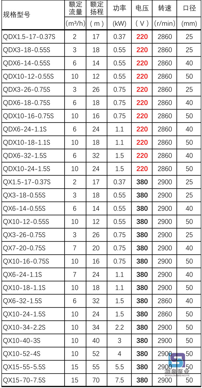 產品介紹 產品概述: 1、QX15-70-7.5S 不銹鋼高揚程潛水泵整體采用不銹鋼精密鑄造,耐腐蝕,環保型,外形美觀,體積小,經久耐用。 2、不銹鋼潛水泵采用氟橡膠雙端面機封,氟橡膠徑向O型圈密封,有效地對環境惡劣的液體進行密封保護作用。 3、電機采用F級絕緣,裝有熱保護裝置,大大延長了泵的使用壽命。 4、可根據客戶特殊要求定制防腐蝕電纜線、四氟機封,及高溫液體的零件配置。 5、采用不銹鋼閉式沖壓焊接葉輪,大大提高了揚程。 使用條件: 1、電泵潛入水下深度不超過5m。 2、輸送介質溫度不超過60℃。 3、輸送介質的PH值304(4-10), 316(2-13)。 4、輸送介質中含固體顆粒直徑不大于0.2mm,體積不超過0.1%。 主要用途: QX15-70-7.5S 不銹鋼高揚程潛水泵適用于工礦企業、食品行業、海水養殖、景觀工程、深井提水、農田灌溉等一般腐蝕性介質。 ![]() 更多型號請來電咨詢。 因產品生產批次、型號不同,產品圖片及安裝尺寸僅供參考,詳情可聯系我們的銷售人員了解更多QX15-70-7.5S 不銹鋼高揚程潛水泵相關信息!