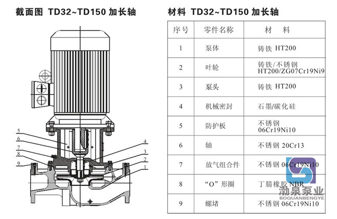 產(chǎn)品介紹 TD100-48/2SWHC 立式單級(jí)管道循環(huán)泵配有標(biāo)準(zhǔn)電機(jī)和機(jī)械密封。此類管道泵產(chǎn)品的結(jié)構(gòu)與相近類型產(chǎn)品相比,更不易受到泵送液體中雜質(zhì)的影響。 產(chǎn)品設(shè)計(jì)為頂部可拉出的拆裝形式,其可以在不影響管路系統(tǒng)的情況下對(duì)泵進(jìn)行維護(hù)。 應(yīng)用 產(chǎn)品適宜在清潔、稀薄、非侵蝕、非易爆易燃,且不含有任何可能對(duì)泵造成機(jī)械或化學(xué)損害的固體顆粒和纖維的液體中使用。具體對(duì)液體要求及應(yīng)用如下;而在液體粘稠或密度較大情況下使用時(shí)會(huì)造成泵特性曲線的下降和能耗的增加。 液體溫度:-15℃~110℃ 系統(tǒng)最高壓力:常規(guī)型為PN12巴;特殊型為PN16巴。 TD100-48/2SWHC 立式單級(jí)管道循環(huán)泵產(chǎn)品在用于輸送水時(shí),其可以用于生活用水、工業(yè)用水、冷卻系統(tǒng)用水和區(qū)域供熱系統(tǒng)的冷、熱用水。TD離心泵產(chǎn)品可以在以下位置使用: ·混合環(huán)路中的泵 ·鍋爐混流泵 ·燃?xì)饫鋬鰴C(jī)泵 ·部分流量過濾器泵 ·定壓系統(tǒng)用泵 ·生活熱水循環(huán) TD100-48/2SWHC 立式單級(jí)管道循環(huán)泵產(chǎn)品用于工業(yè)方面。如在化工、制藥、食品加工等行業(yè)。可以用于: ·原料的輸送 ·系統(tǒng)增壓泵 ·混合環(huán)路循環(huán)泵 ![]() ![]() ![]() 因產(chǎn)品生產(chǎn)批次、型號(hào)不同,產(chǎn)品圖片及安裝尺寸僅供參考,詳情可聯(lián)系我們的銷售人員了解更多TD100-48/2SWHC 立式單級(jí)管道循環(huán)泵相關(guān)信息!