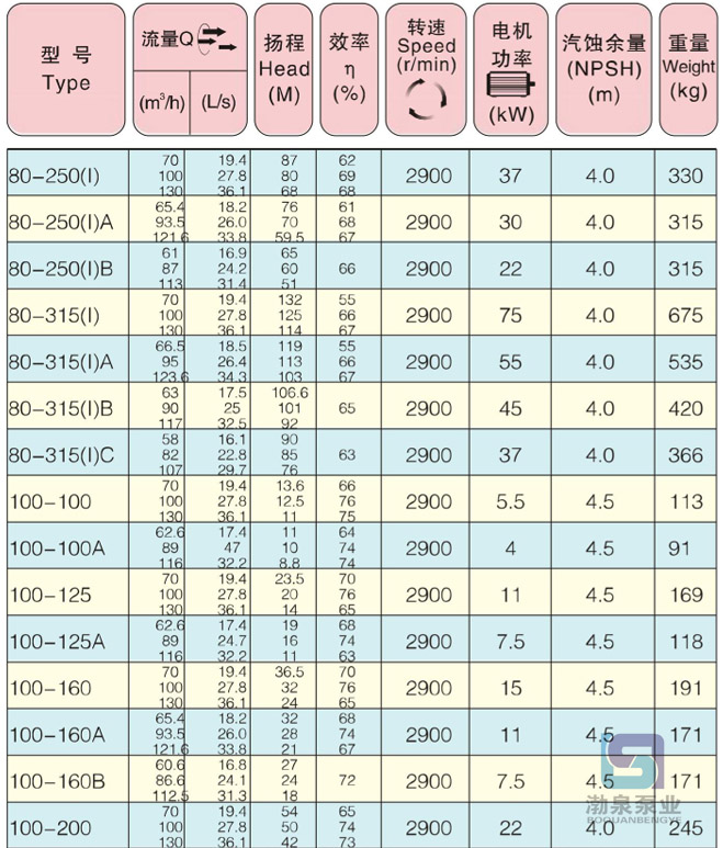 產(chǎn)品介紹 ISW80-315(I)A臥式管道離心泵是采用IS型離心泵之性能參數(shù),在一般臥式泵的基礎(chǔ)上進(jìn)行巧妙組合設(shè)計(jì)而成,同時根據(jù)使用溫度、介質(zhì)等不同在ISW型管道泵基礎(chǔ)上派生出適用熱水泵、高溫、耐腐蝕化工泵、油泵。該系列產(chǎn)品具有高效節(jié)能、噪音低、性能可靠等優(yōu)點(diǎn),符合JB/T53058-93的標(biāo)準(zhǔn)要求,產(chǎn)品按ISO2858標(biāo)準(zhǔn)設(shè)計(jì)制造。具有效率高、流量及揚(yáng)程范圍大、結(jié)構(gòu)合理、成本低、壽命長、占地面積小、安裝維修方便等特點(diǎn)。是替代IS、DL等常規(guī)產(chǎn)品的新離心泵,特別適用于高層建筑的給排水、噴灌、冶金、市政、礦山水處理排污,食品、化工、空調(diào)及其他行業(yè)輸送水、化學(xué)介質(zhì)及其他液體。 ISW80-315(I)A臥式管道離心泵流量范圍15~1200m3 /h,分基本型、擴(kuò)流型、A、B、C切割型等250多種規(guī)格,并根據(jù)流體介質(zhì)和溫度不同又派生出清水泵、熱水泵、化工泵、防爆油泵、防爆化工泵等系列產(chǎn)品。 主要用途 1、ISW臥式清水泵供輸送清水及物理化學(xué)性質(zhì)類似于清水的其它液體之用,適用于工業(yè)和城市給排水、高層建筑增壓送水、園林噴灌、消防增壓、遠(yuǎn)距離輸送、暖通制冷循環(huán)、浴室等冷暖水循環(huán)增壓及設(shè)備配套,使用溫度T≤80℃。 2、ISWR臥式熱水泵,廣泛適用于:冶金、化工、紡織、造紙以及賓館飯店等鍋爐熱水增壓循環(huán)輸送及城市采暖系統(tǒng),ISWR型使用溫度T≤120℃。 3、ISWH臥式化工泵,供輸送不含固體顆粒,具有腐蝕性。粘度類似于水的液體,適用于石油、化工、冶金、電力、造紙、食品、制藥和合成纖維等部門,使用溫度為-20℃~+120℃。 4、ISWY臥式管道油泵,供輸送汽油、煤油、柴油等油類產(chǎn)品或易燃、易爆液體,被輸送介質(zhì)溫度為-20℃~120℃。 5、ISWHY型臥式不銹鋼防爆化工離心泵,適用于輸送易燃性化工液體。 6、ISWD臥式低轉(zhuǎn)速泵,適應(yīng)要求環(huán)境噪聲很低的場合,使用溫度T≤120℃。 工作條件 1.吸入壓力≤1.0MPa,或泵系統(tǒng)最高工作壓力≤1.6MPa,即吸入口壓力+泵揚(yáng)程≤1.6MPa、泵靜壓試驗(yàn)壓力為≤2.5MPa,訂貨時請注明系統(tǒng)工作壓力。泵系統(tǒng)工作壓力大于1.6MPa時應(yīng)在訂貨時另行提出,以便在制造時泵的過流部分和聯(lián)接部分采用鑄鋼材料。 2.環(huán)境溫度<40℃,相對濕度<40%。 3.所輸送介質(zhì)中固體顆粒體積含量不超過單位體積的0.1,粒度<0.2mm。 注:如果用介質(zhì)為帶有細(xì)小顆粒,請?jiān)谟嗀洉r說明,以便廠家采用耐磨式機(jī)械密封。 產(chǎn)品特點(diǎn) 運(yùn)行平穩(wěn):泵軸的絕對同心度及葉輪優(yōu)異的動靜平衡,保證平穩(wěn)運(yùn)行,絕無振動。 滴水不漏:不同材質(zhì)的硬質(zhì)合金密封,保證了不同介質(zhì)輸送均無泄漏。 噪音低:兩個低噪音軸承支撐下的水泵,運(yùn)轉(zhuǎn)平穩(wěn),除電機(jī)微弱聲響,基本無噪音。 故障率低:結(jié)構(gòu)簡單合理,關(guān)鍵部分采用品質(zhì)配套,整機(jī)無故障工作時間大大提高。 維修方便:更換密封、軸承,簡易方便。 占地更省:出口可向左、向右、向上三個方向,便于管道布置安裝,節(jié)省空間。 ![]() ![]() ![]() 因產(chǎn)品生產(chǎn)批次、型號不同,產(chǎn)品圖片及安裝尺寸僅供參考,詳情可聯(lián)系我們的銷售人員了解更多ISW80-315(I)B臥式管道離心泵相關(guān)信息!
