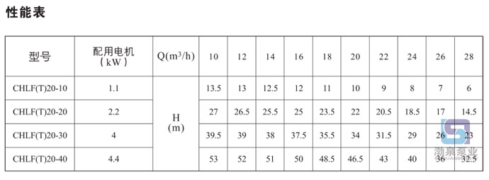 產品介紹 CHLF20-10LSWSC輕型臥式多級離心泵配加長軸電機采用了免修機械密封,緊湊式結構使泵尺寸很小,軸向入口和徑向出口。輕型段式多級離心泵的過流部件均采用不銹鋼材料(304或316)制成,輕型不銹鋼多級離心泵具有低噪音,耐輕腐蝕,外形美觀、體積小、重量輕、使用壽命長等特點,不同材質的硬質合金密封,保證了不同介質輸送均無泄漏;噪音低:兩個低噪音軸承下的水泵,運轉平穩,除電機微弱聲響,基本無噪聲;故障率低:結構簡單合理,整機無故障工作時間大大提高。采用國內優秀水力模型優化設計而成,是理想的新一代高效節能輕型臥式多級離心泵。采用了免修機械密封。輕型段式多級離心泵的過流部件均采用不銹鋼材料(304或316)制成,具有低噪音,耐輕腐蝕,外形美觀、體積小、重量輕、使用壽命長等特點。 二、應用范圍: 主要用于家庭型中央空調循環及工業上液體的傳輸。如脫礦物質水、軟水、凈化系統、輕油等的循環和增壓。 1)小型中央空調循環 2)冷卻系統 3)工業清洗 4)水處理(水的凈化) 5)水產養殖 6)施肥/計量系統 7)環境應用 三、工作條件: 稀薄、干凈、不凝、不爆炸、不含固體顆?;蚶w維的液體。 液體溫度: 常溫型-15℃至+70℃ 熱水型+70℃至+110℃ 最大環境溫度:+40℃ 最大運作壓力:10巴 最大進口壓力受最大運作壓力限制 介質酸堿性:PH4~9 四、輸送液體: 1、稀薄、清潔、不含固體顆?;蚶w維的非易燃易爆液體。 2、泵可以輸送諸如礦泉水、軟化水、純水、清油和其它輕化工介質。 3、當輸送液體的密度或粘度大于水,如需要,必須配用大功率電機。 4、泵是否適用于某一特定液體由多種因素決定,其中最重要的是氯含量、PH值、溫度和溶濟、油的含量等。 五、曲線條件: 下述條件適用于后面所示性能曲線。 1、所有曲線都基于電機在恒速2900rpm的測量值。 2、曲線容差符合ISO9906,附錄A。 3、測試采用20℃不含空氣的水,運動粘度為1mm2/s。 4、泵的使用參照加粗曲線的性能范圍,以防流量過小產生過熱和流量過大使電機過載等。 六、電機: 電機為全封閉,風冷式二極電機 防護等級:IP55 絕緣等級:F 標準電壓, 50Hz: 1×220-240V 3×220-240V 380-415V ![]() 因產品生產批次、型號不同,產品圖片及安裝尺寸僅供參考,詳情可聯系我們的銷售人員了解更多CHLF20-10LSWSC輕型臥式多級離心泵相關信息!