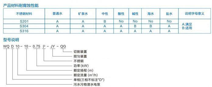 ![]() ![]() 不銹鋼防爆潛水排污泵QWP80-40-7-2.2產品概述/Product Overview 1.國標法蘭WQ(D)-S不銹鋼精密鑄造污水污物潛水電泵采用不銹鋼精密鑄造外殼,具有耐腐蝕,環保型,揚程高,流量大等特點。 2.油室采用氟橡膠雙面機械密封,外室采用單面氟橡膠機械油封結構,有效地減少因骨架油封與軸之間摩擦而造成的密封進水問題。 3.電機采用高溫線,F級絕緣,熱保護裝置,有效地延長泵的使用壽命。 4.根據客戶的要求,可帶攪勻裝置,該裝置隨電機軸旋轉產生極強的攪拌力,將污水池內的沉積物拌成懸浮物后排出。也可帶切割裝置,能將污水中的長纖維,塑料,紙袋,稻草等雜物碎片后排出。 主要用途/The Main Purpose 不銹鋼耐腐蝕排污泵適用于建筑樓宇、醫院、住宅小區、市政工程、道路交通及施工、工廠排污、養殖、藥業、飲料、海水鹽水、一般腐蝕性介質中含有的固體顆粒、長纖維廢水、污水。 使用條件/Conditions Of Use 1.以葉輪中心為準,潛入水下深度不得超過5m; 2.輸送介質溫度不高于60C ; 3.輸送介質的PH值304(4-10),316(4-13); 4.輸送介質的運動黏度為7x 10~~23 x 10"m?/S 產品材料耐腐蝕性能詳情請參考P36-38 ![]() ![]()