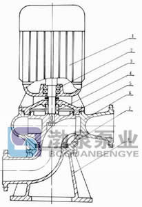 該系列泵具有兩種結構形式,一是電機與泵直接同軸,二是采用聯軸器聯接,電機采用標準立式電機。其結構如圖所示,每種結構具有兩種底座連接形式,一是進口水平吸入,具有轉角功能。