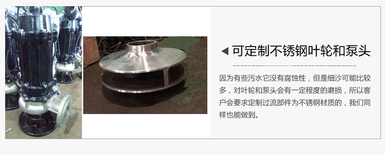 1、采用獨特的雙流道無堵塞葉輪結構,提高污水污物的過流能力和排污能力。