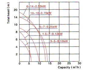 | 型號 | 揚程(m) | 流量(m3/h) | 電壓、頻率(V、Hz) | 功率(kw/HP) | 配管內徑(mm) | 外形尺寸(cm) | 重量(kg) |